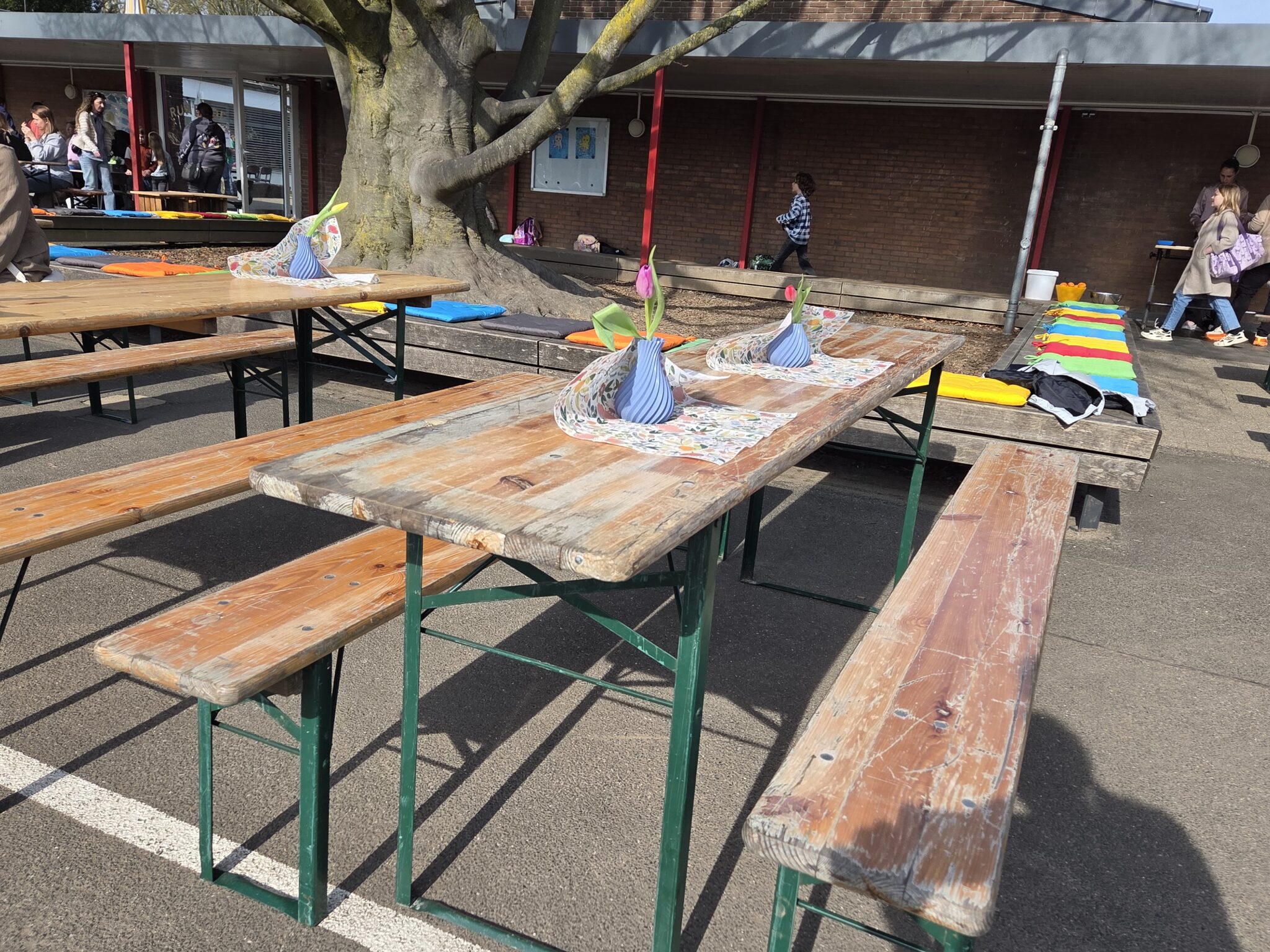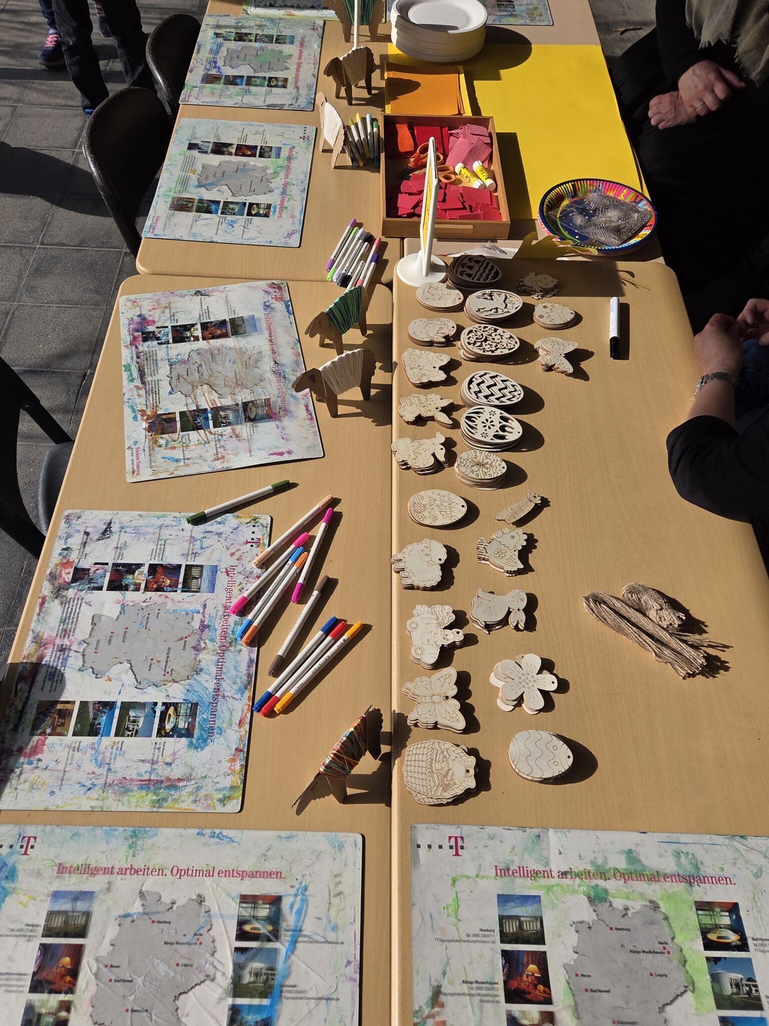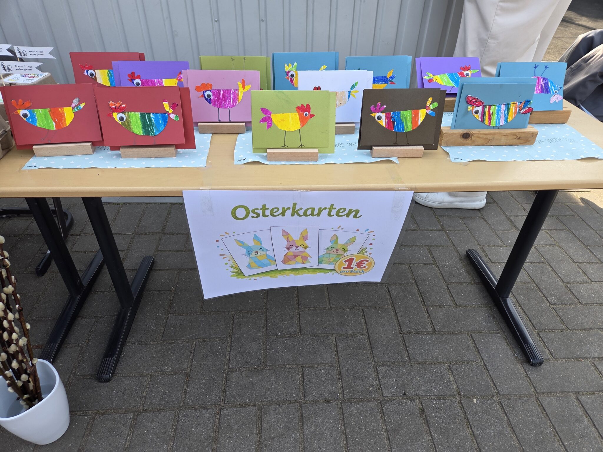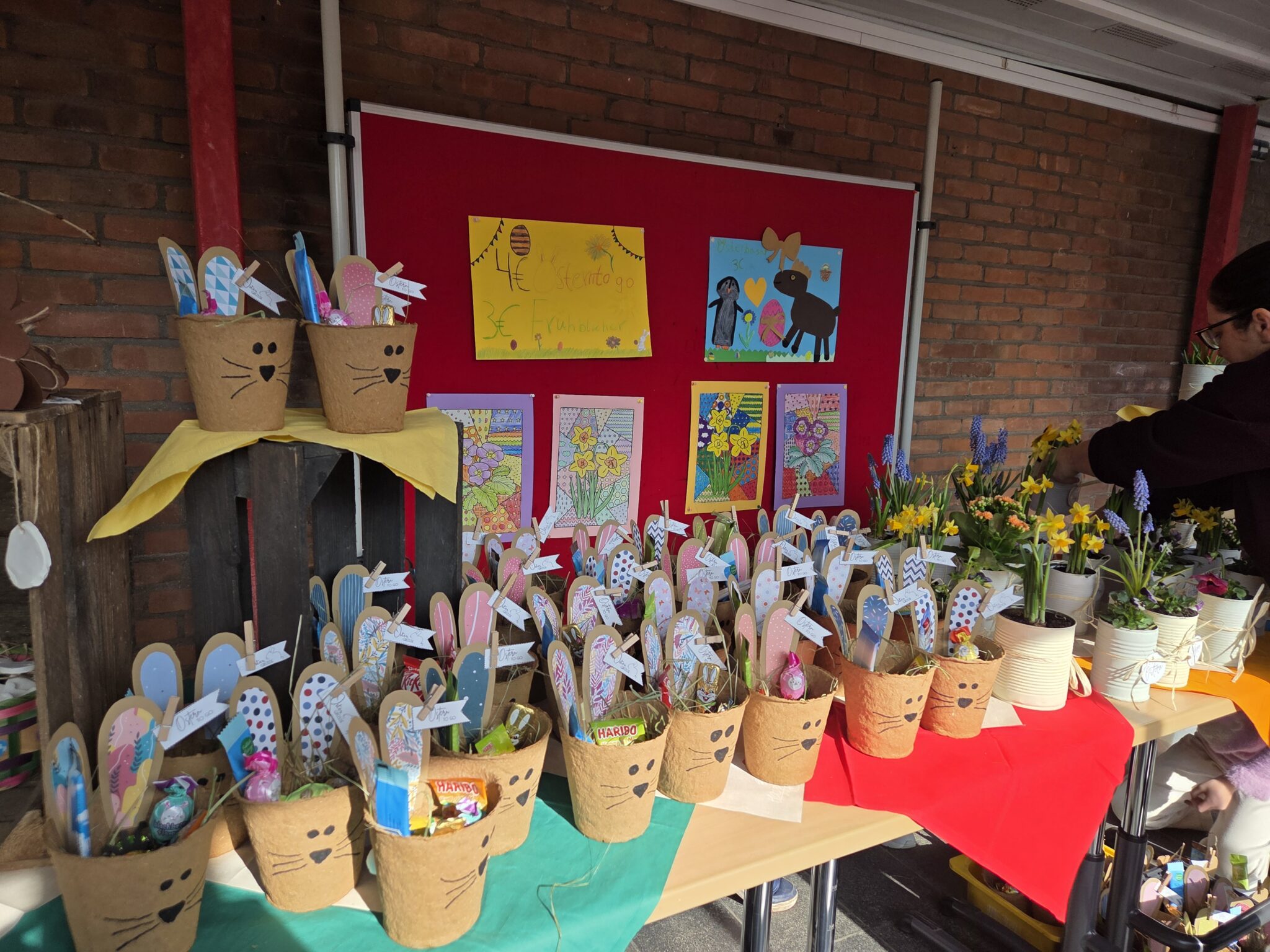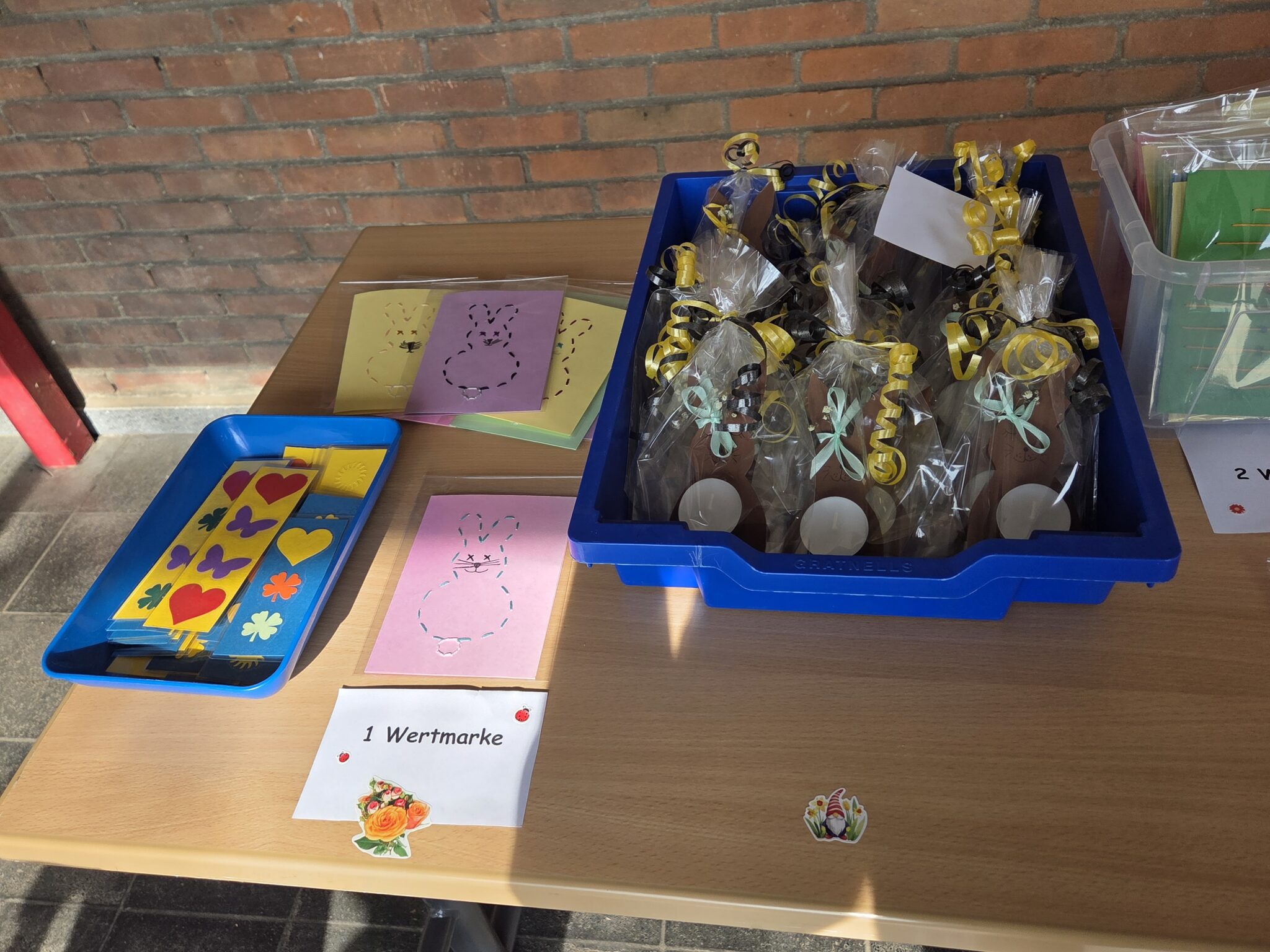 Bei strahlender Frühlingsstimmung fand am vergangenen Freitag unser erster Osterbasar statt – und er war ein rundum gelungenes Fest für Groß und Klein! Gestartet wurde mit einem gemeinsamen Flashmob zu dem Gute-Laune-Hit „Happy“. Mit viel Kreativität und Begeisterung haben die Kinder im Vorfeld gebastelt und ihre liebevoll gestalteten Werke auf dem Basar präsentiert und verkauft. Von bunten Osterdekorationen bis hin zu kleinen Geschenkideen war für jeden etwas dabei. Der Verkauf war ein großer Erfolg und es konnte eine beachtliche Summe eingenommen werden.