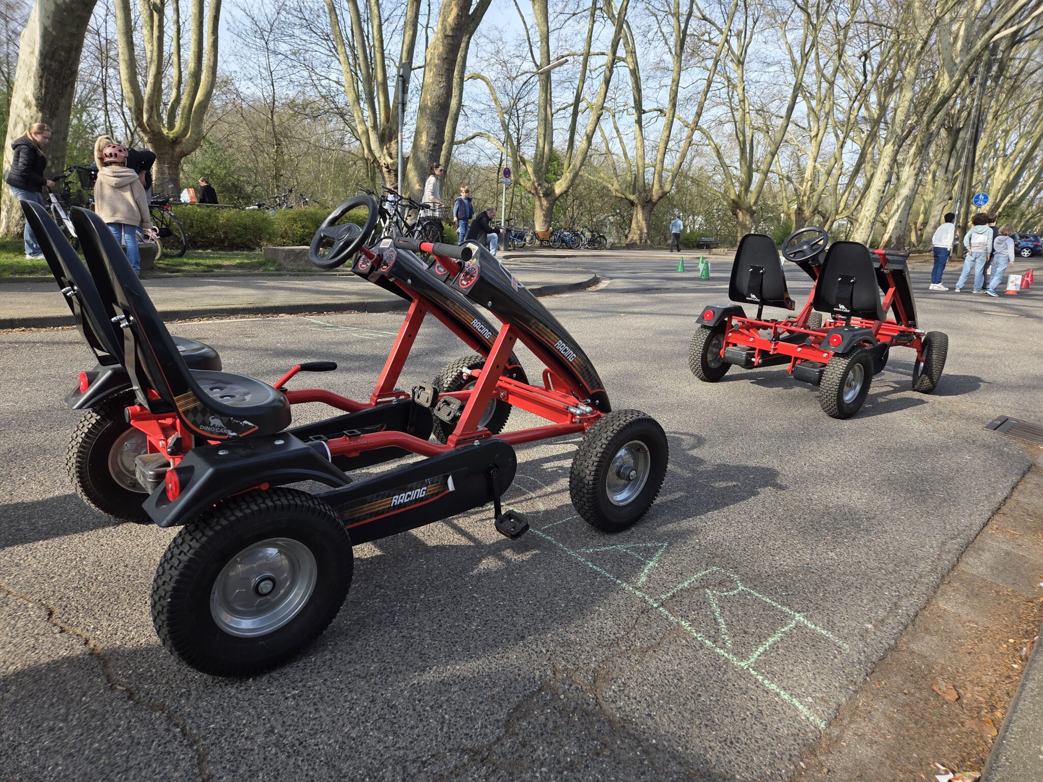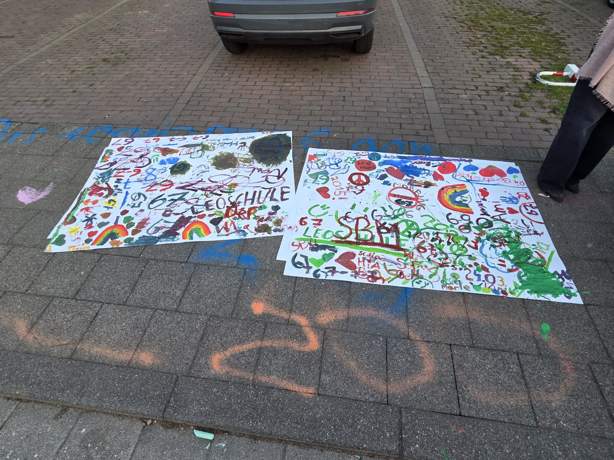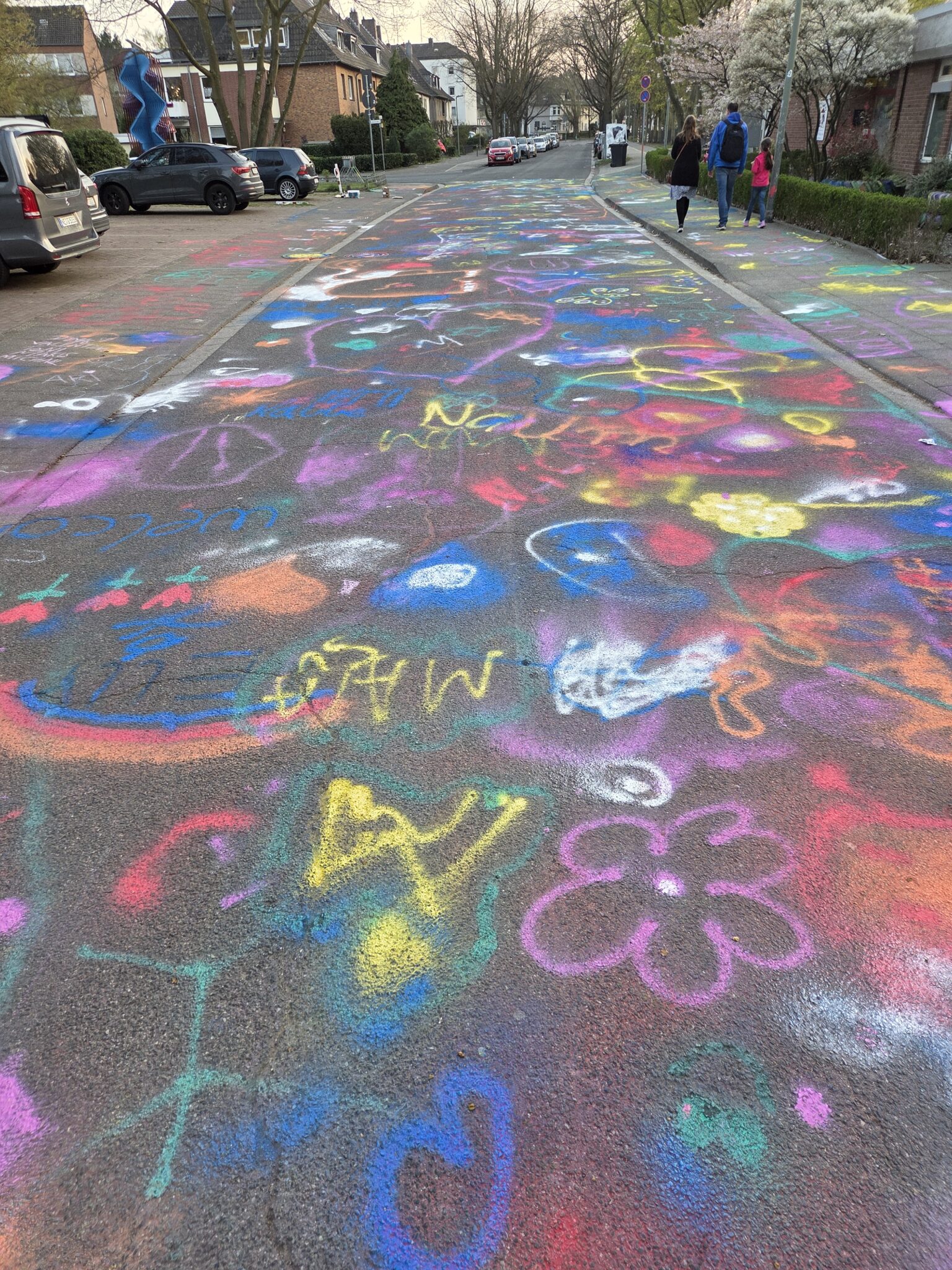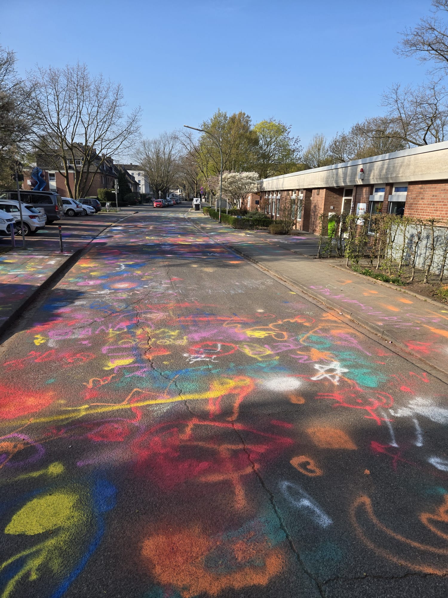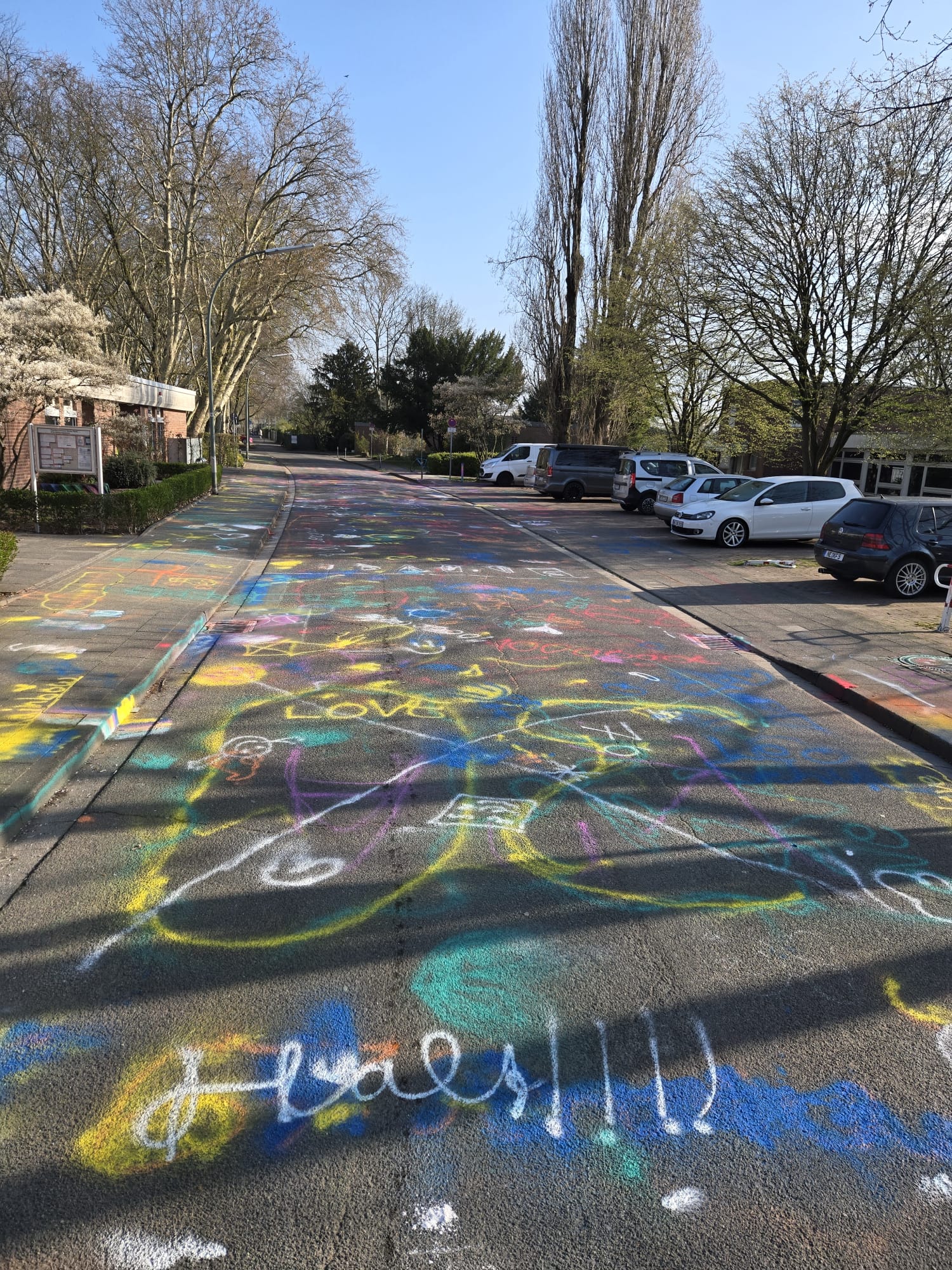 Die Kinder hatten zusätzlich die Möglichkeit, an verschiedenen Stationen selbst kreativ zu werden oder zu spielen. Ein besonderes Highlight war die bunt bemalte Schulstraße, die für eine fröhliche und einladende Atmosphäre sorgte. Zusätzlich wurden Banner bemalt, die zukünftig auf die Schulstraße aufmerksam machen sollen. Im Wendehammer wurde außerdem ein spannender Parcours für Kettcars aufgebaut, der für viel Spaß und Bewegung sorgte.